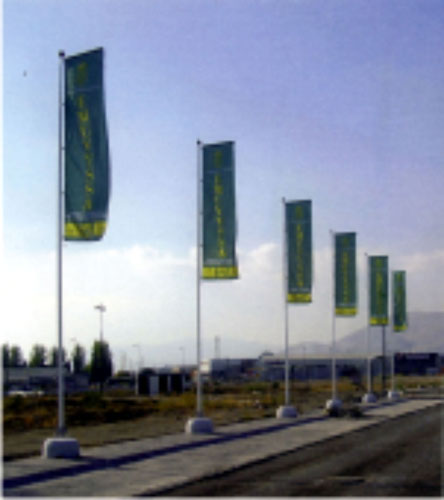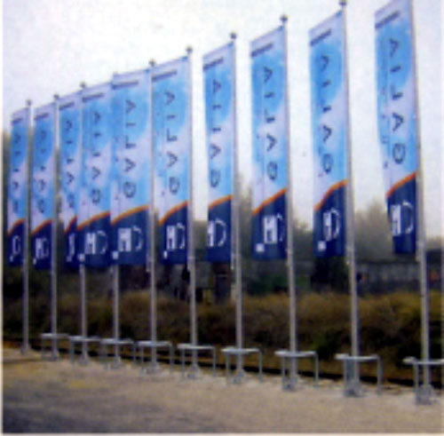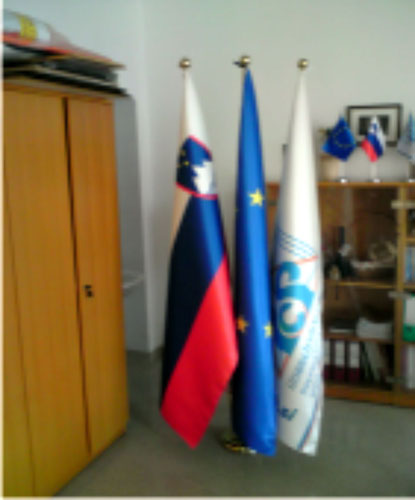 Največja širina tiska je 180 cm. Zastave obšijemo, ojačamo z ojačitvenim robom in prišijemo karabine.